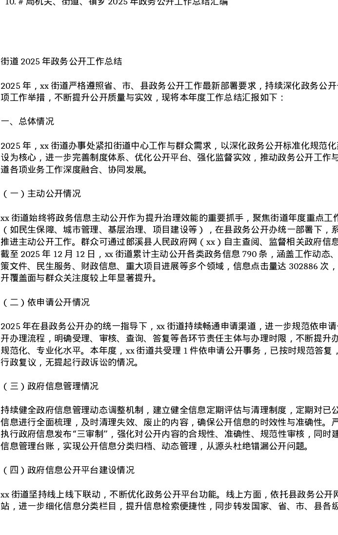 汇编:局机关、街道、镇乡2025年政务公开工作总结10篇