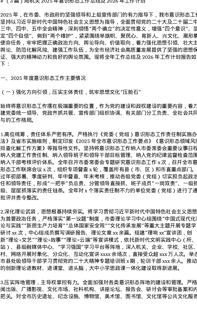 汇编:局机关2025年意识形态工作总结及2026年工作计划