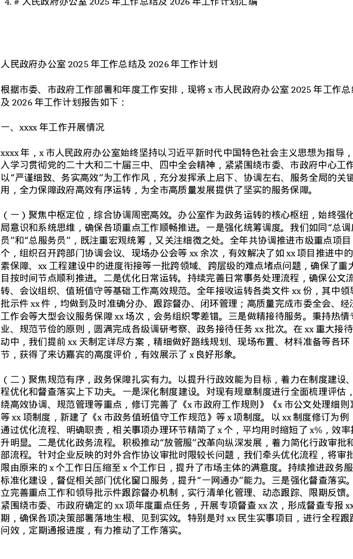 汇编:人民政府办公室2025年工作总结及2026年工作计划4篇