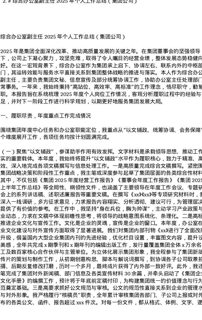 汇编:综合办公室副主任2025年个人工作总结(集团公司)2篇