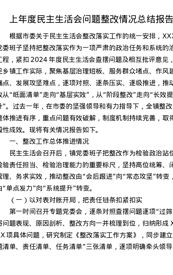 上年度xxxxx问题整改情况总结报告