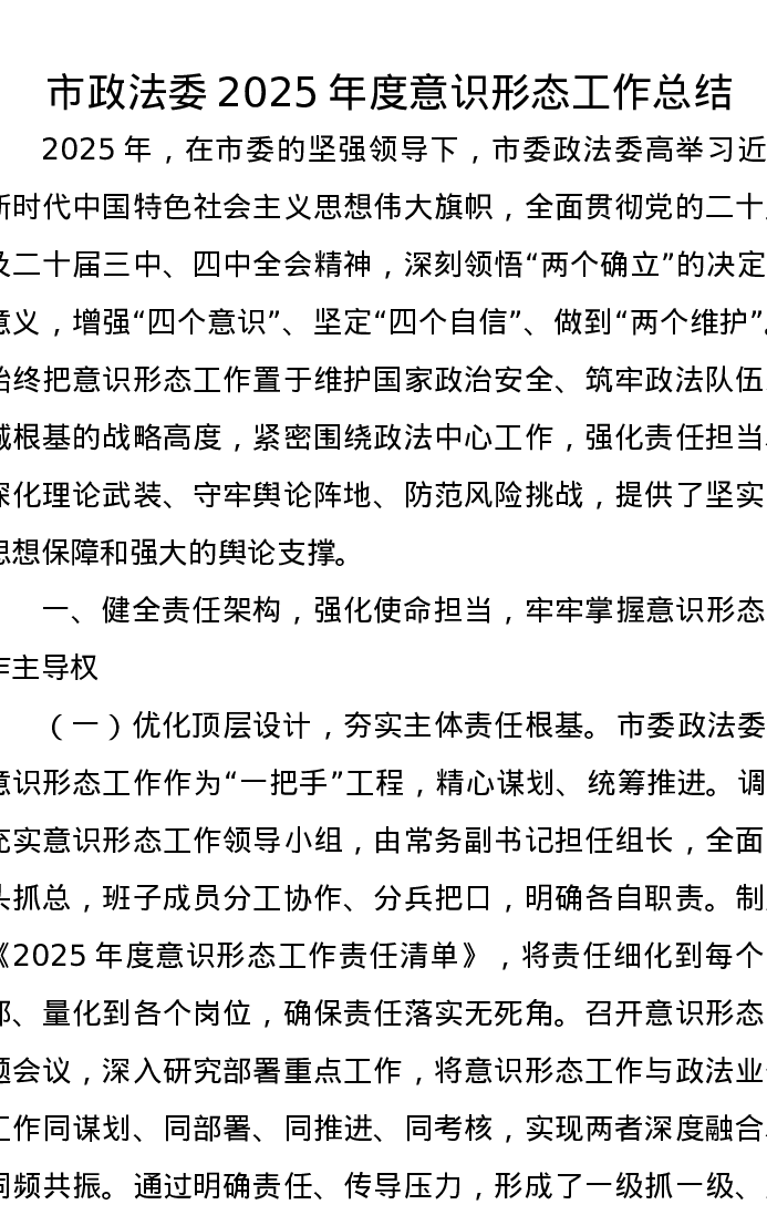 市政法委2025年度意识形态工作总结