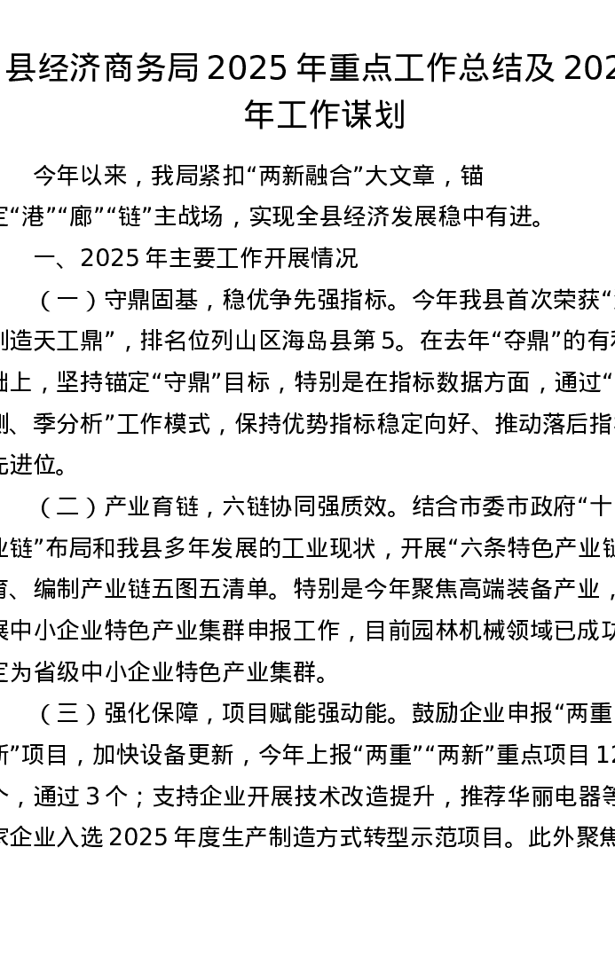 县经济商务局2025年重点工作总结及2026年工作谋划