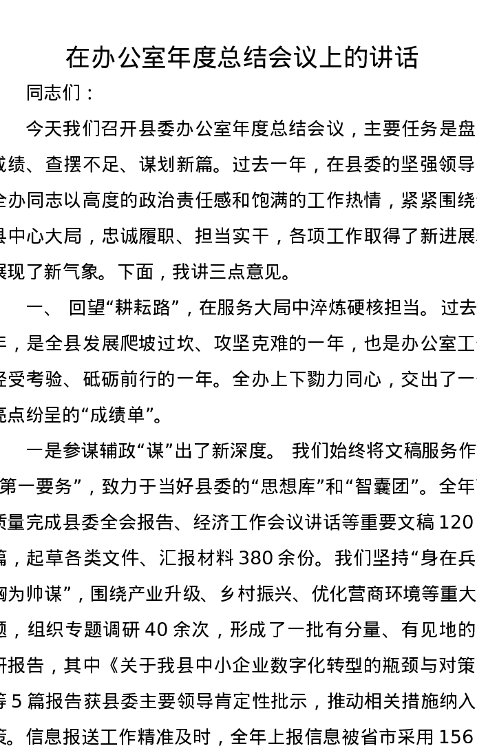 在办公室年度总结会议上的讲话