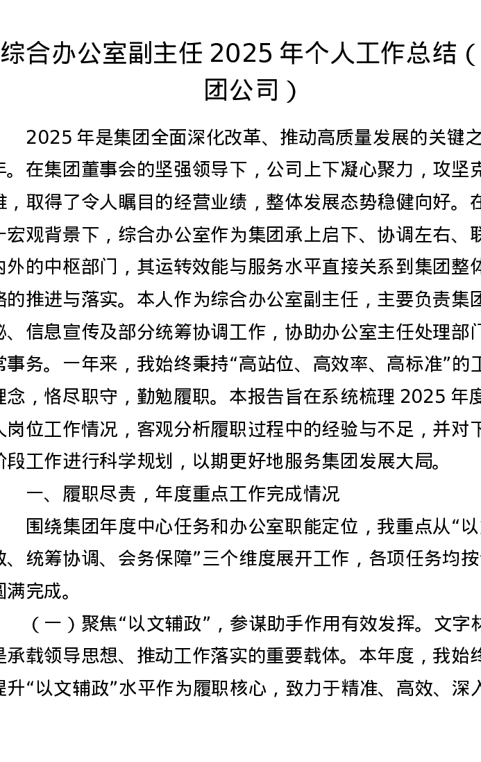 综合办公室副主任2025年个人工作总结(集团公司)