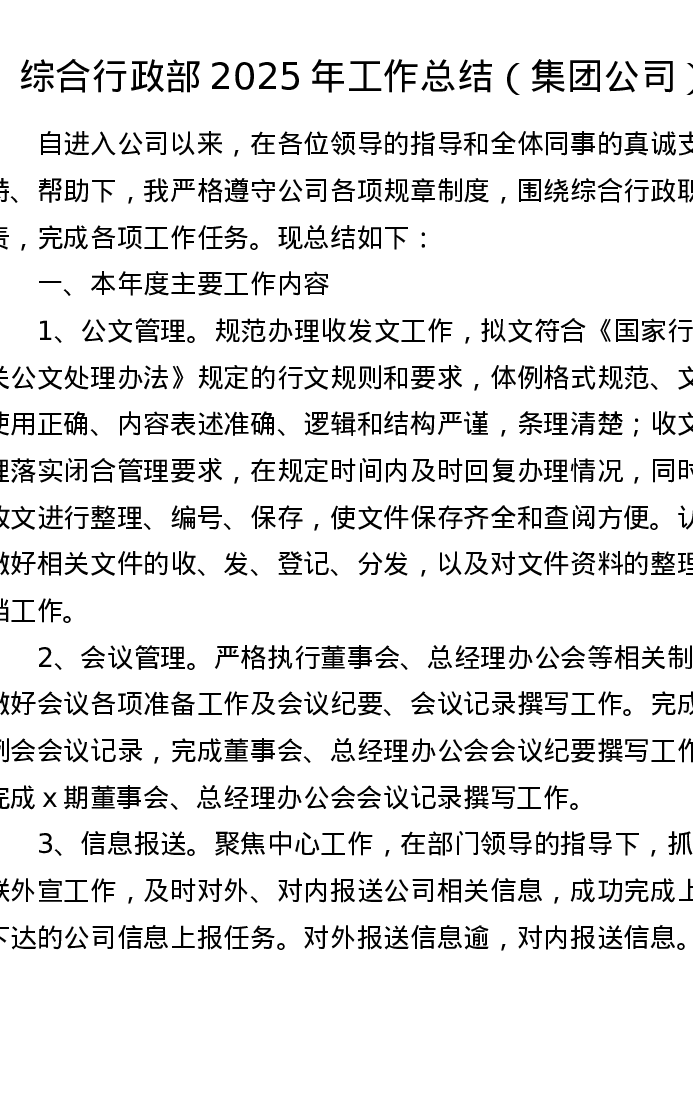 综合行政部2025年工作总结(集团公司)