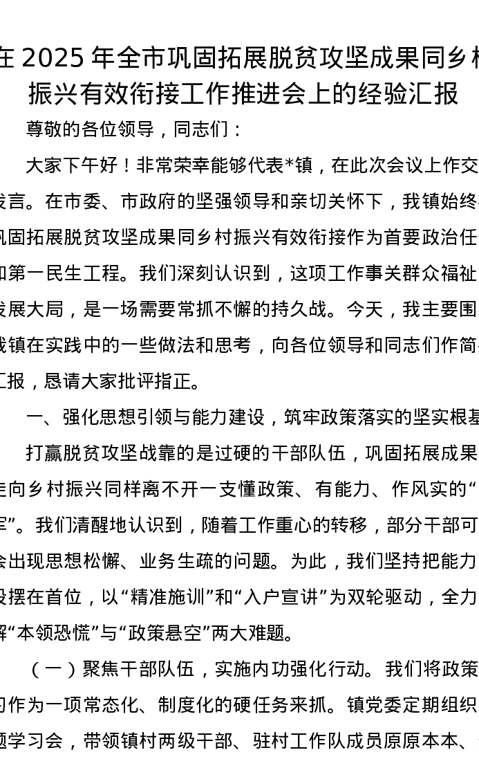 在2025年全市巩固拓展脱贫攻坚成果同乡村振兴有效衔接工作推进会上的经验汇报