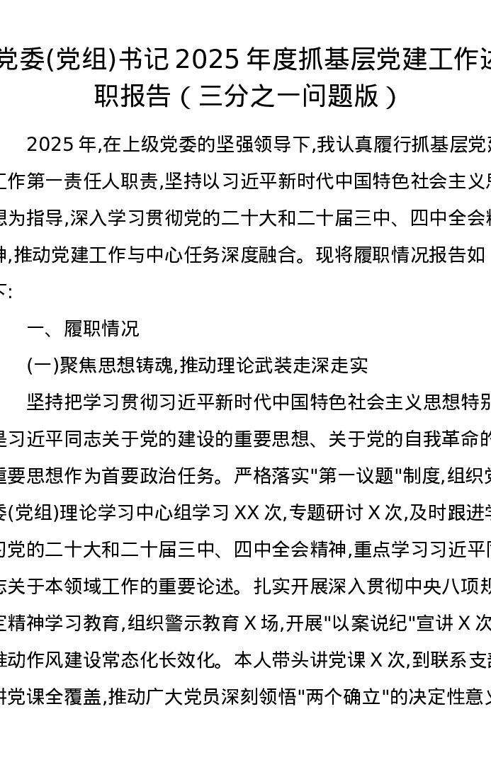 党委(党组)书记2025年度抓基层党建工作述职报告