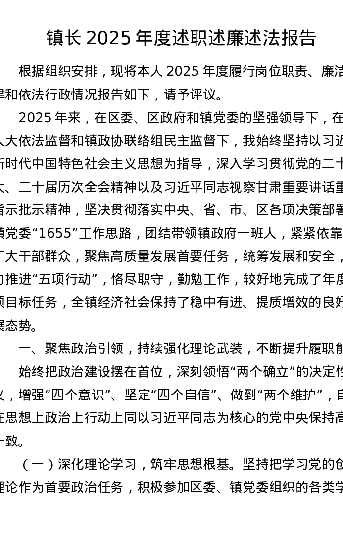镇长2025年度述职述廉述法报告