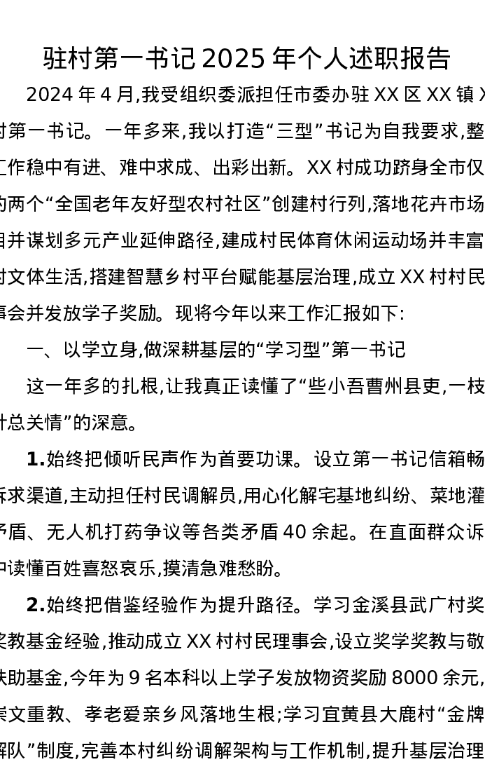 驻村第一书记2025年个人述职报告