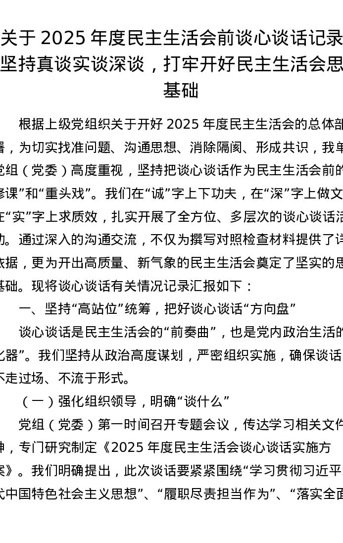 关于2025年度xxxxx前谈心谈话记录:坚持真谈实谈深谈,打牢开好xxxxx思想基础