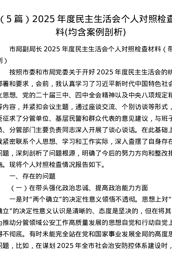 汇编:2025年度xxxxx个人对照检查材料(均含案例剖析)5篇