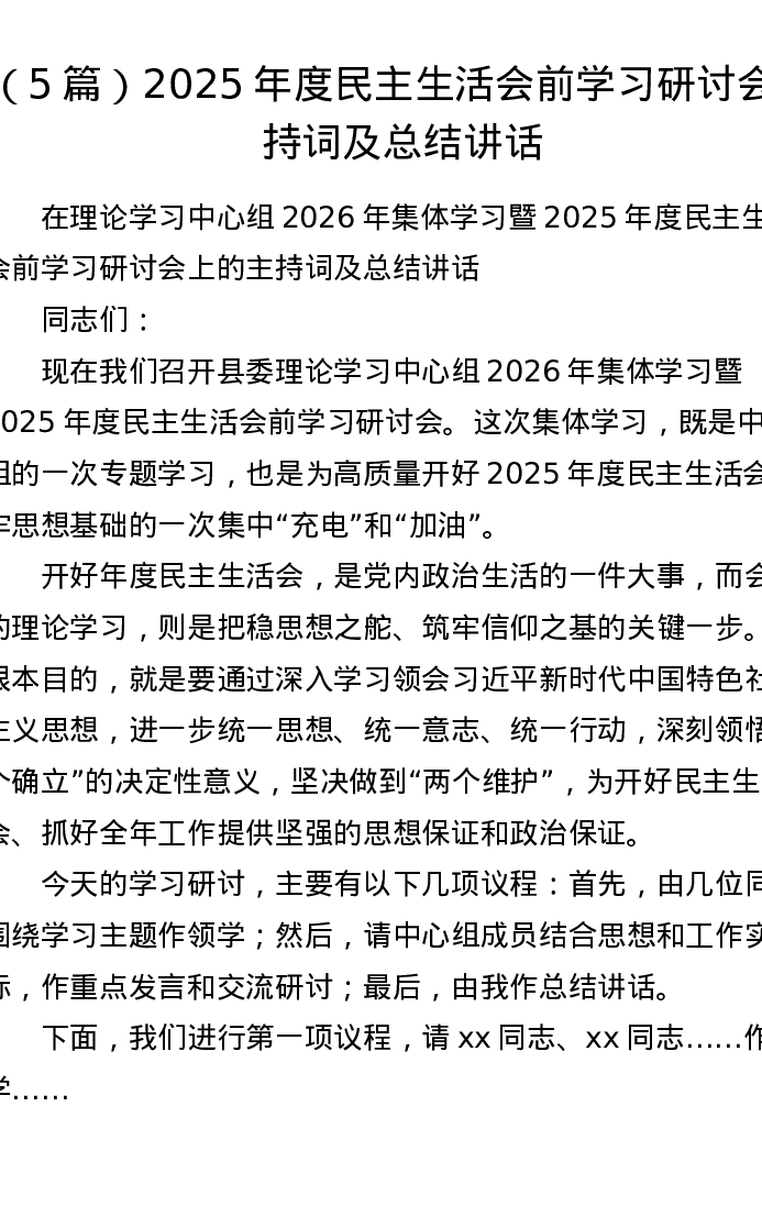 汇编:2025年度xxxxx前学习研讨会主持词及总结讲话