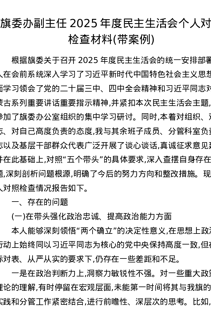 旗委办副主任2025年度xxxxx个人对照检查材料(带案例)