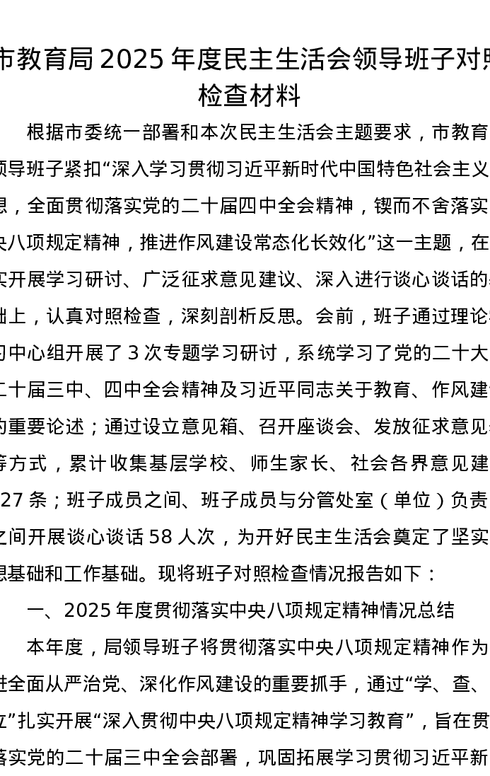 市教育局2025年度xxxxx领导班子对照检查材料
