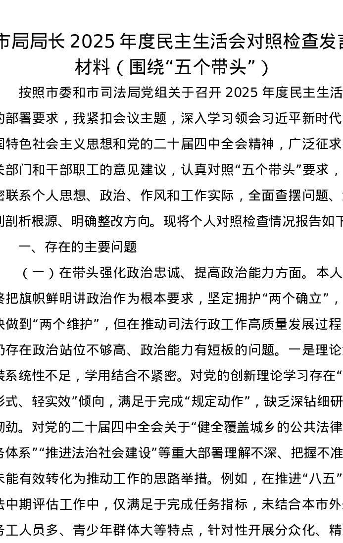 市局局长2025年度xxxxx对照检查发言材料(围绕五个带头)