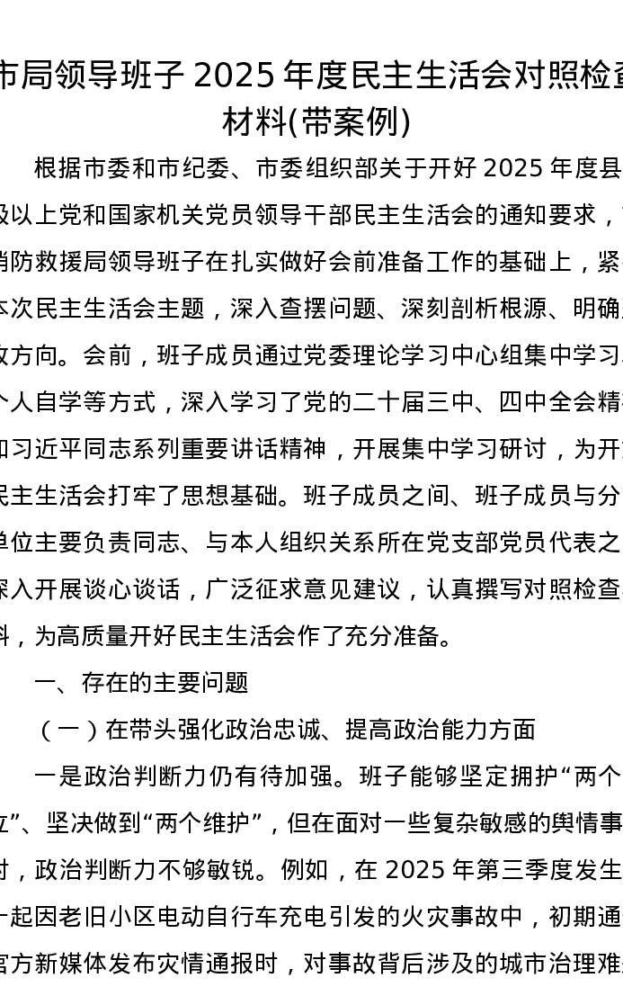 市局领导班子2025年度xxxxx对照检查材料(带案例)