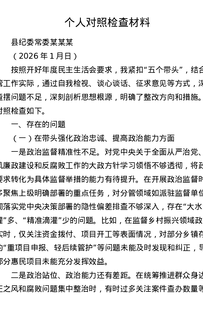 县纪委常委2025年民生生活会个人对照检查材料(4916字)
