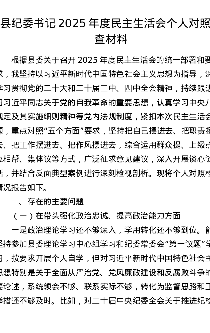 县纪委书记2025年度xxxxx个人对照检查材料(5001字)