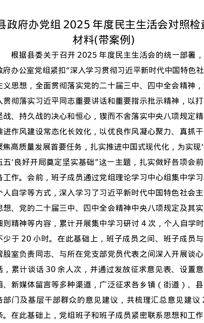 县政府办党组2025年度xxxxx对照检查材料(带案例)