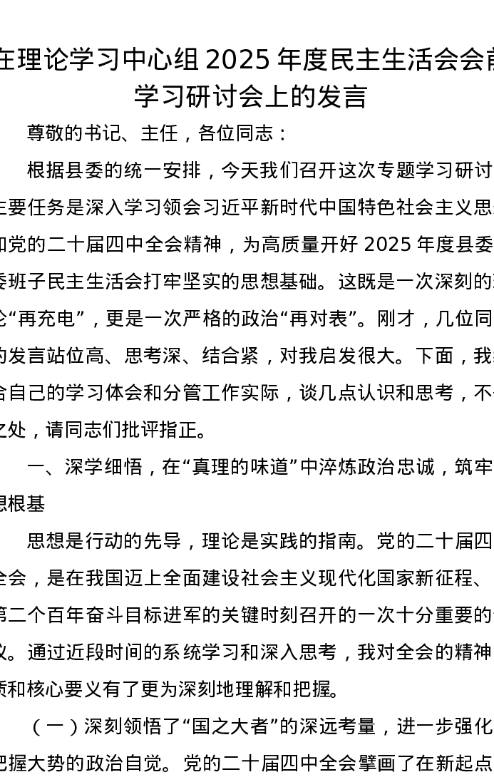 在理论学习中心组2025年度xxxxx会前学习研讨会上的发言