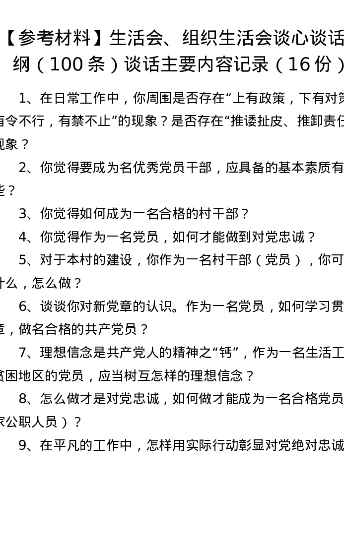 组织xxx会前谈心谈话提纲(100条)