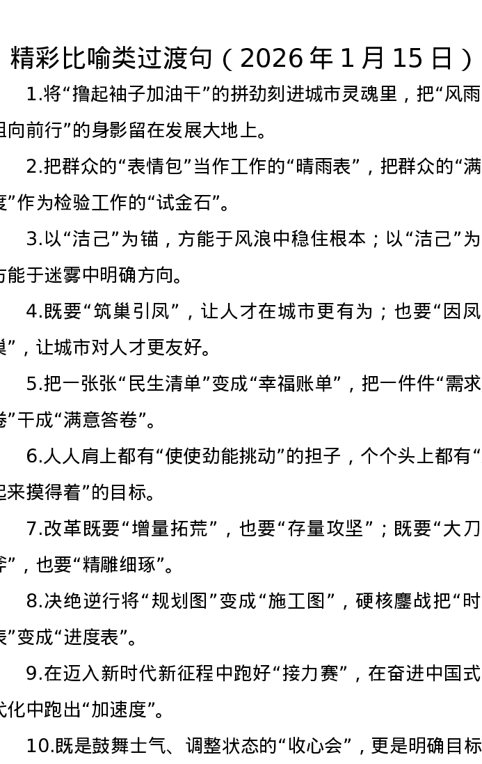 精彩比喻类过渡句(2026年1月15日)