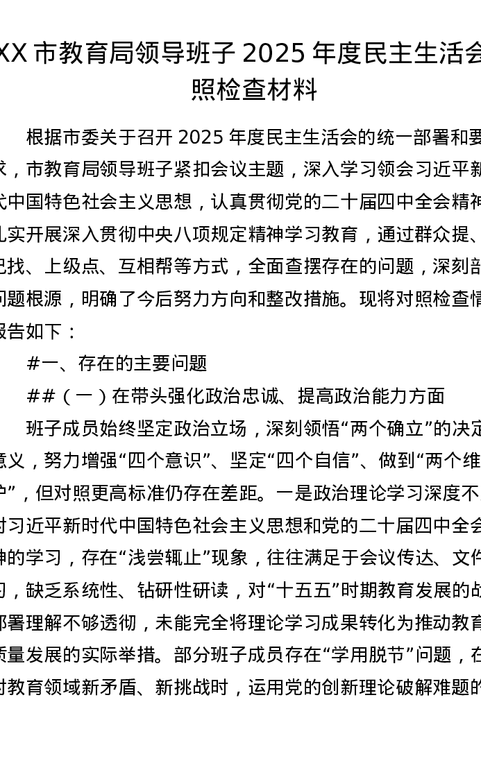 XX市教育局领导班子2025年度xxxxx对照检查材料(5880字)