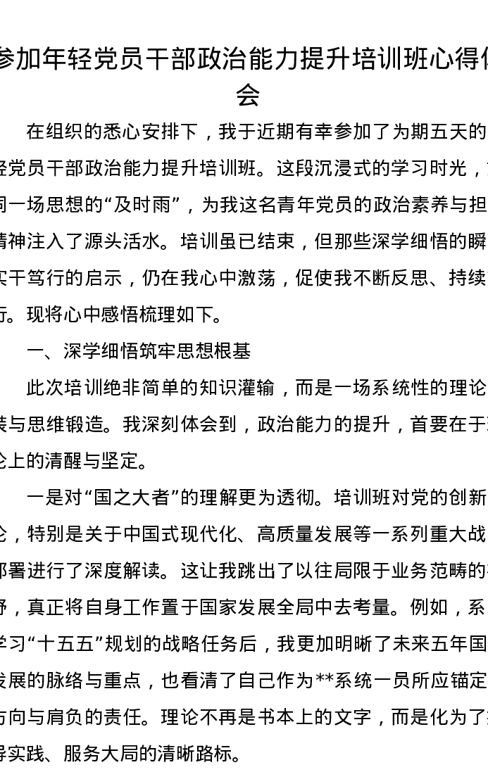 参加年轻党员干部政治能力提升培训班心得体会