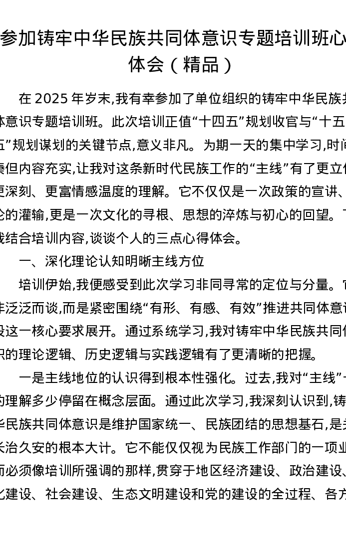 参加铸牢中华民族共同体意识专题培训班心得体会