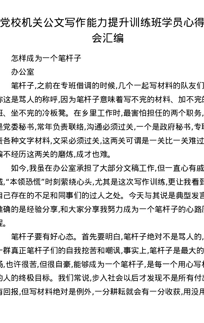 党校机关公文写作能力提升训练班学员心得体会汇编