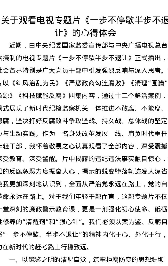关于观看电视专题片《一步不停歇半步不退让》的心得体会