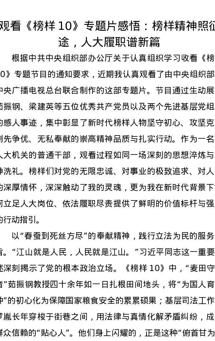 观看《榜样10》专题片感悟:榜样精神照征途,人大履职谱新篇