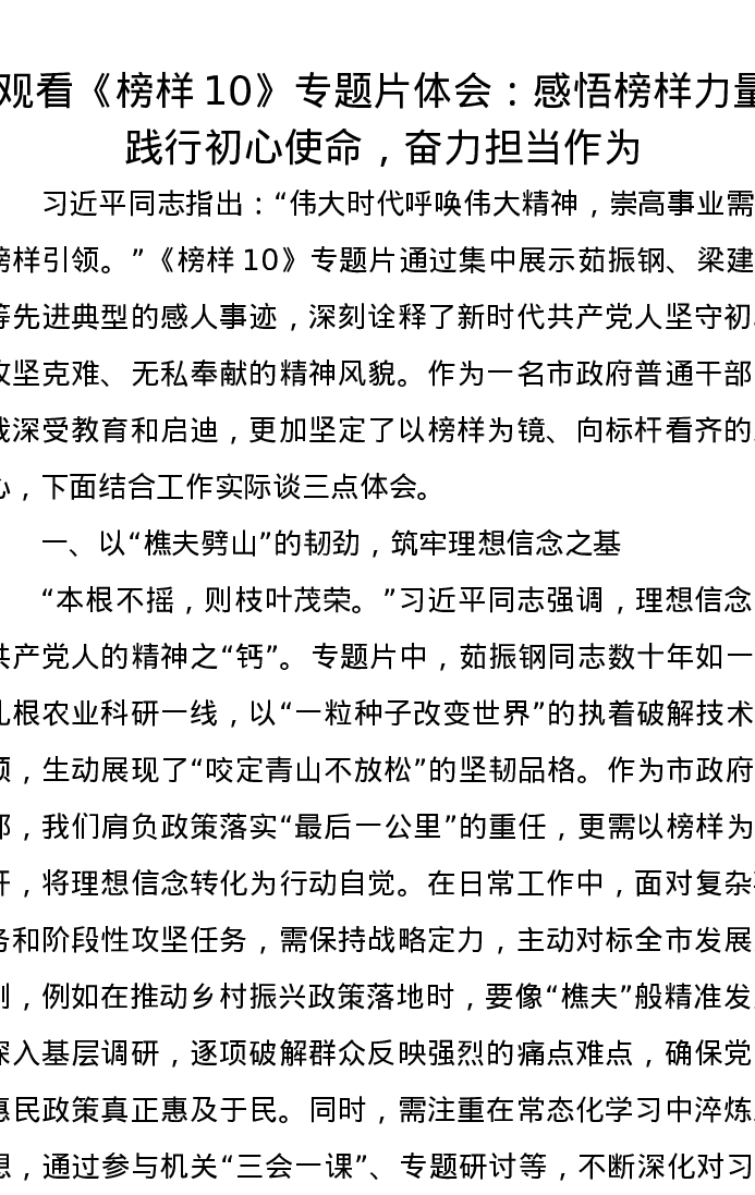 观看《榜样10》专题片体会:感悟榜样力量,践行初心使命,奋力担当作为