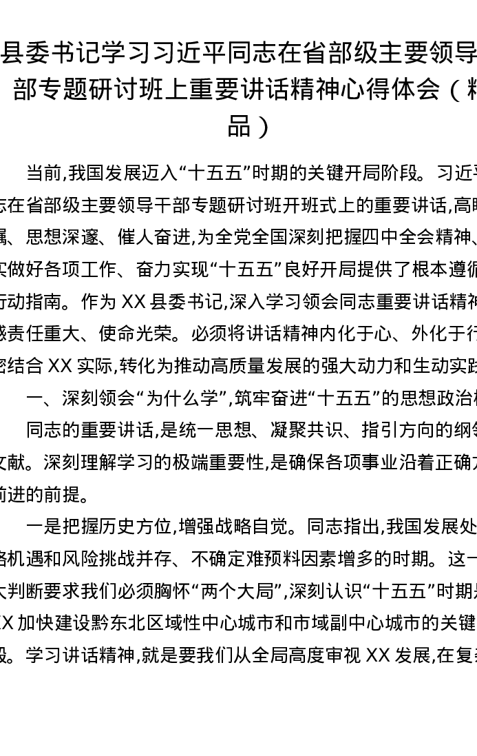 县委书记学习总书记在省部级主要领导干部专题研讨班上重要讲话精神心得体会