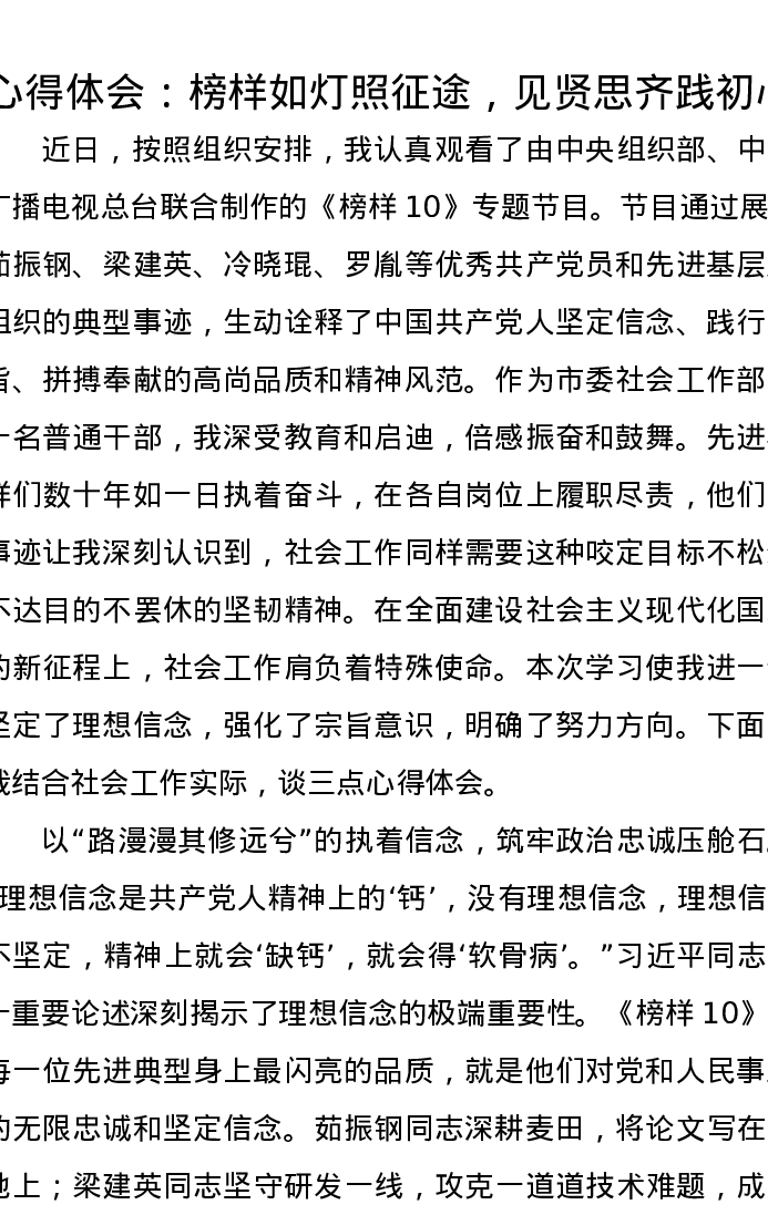 心得体会:榜样如灯照征途,见贤思齐践初心
