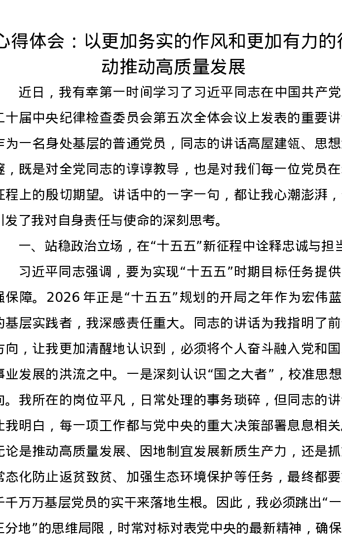 心得体会:以更加务实的作风和更加有力的行动推动高质量发展