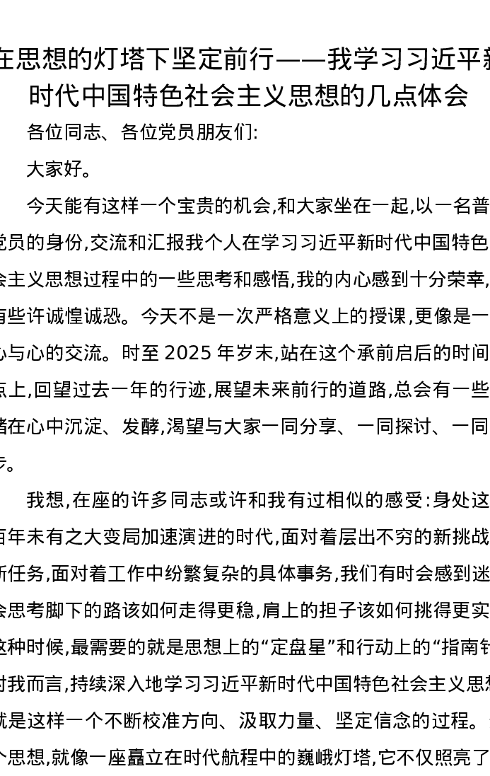 在思想的灯塔下坚定前行——我学习习近平新时代中国特色社会主义思想的几点体会