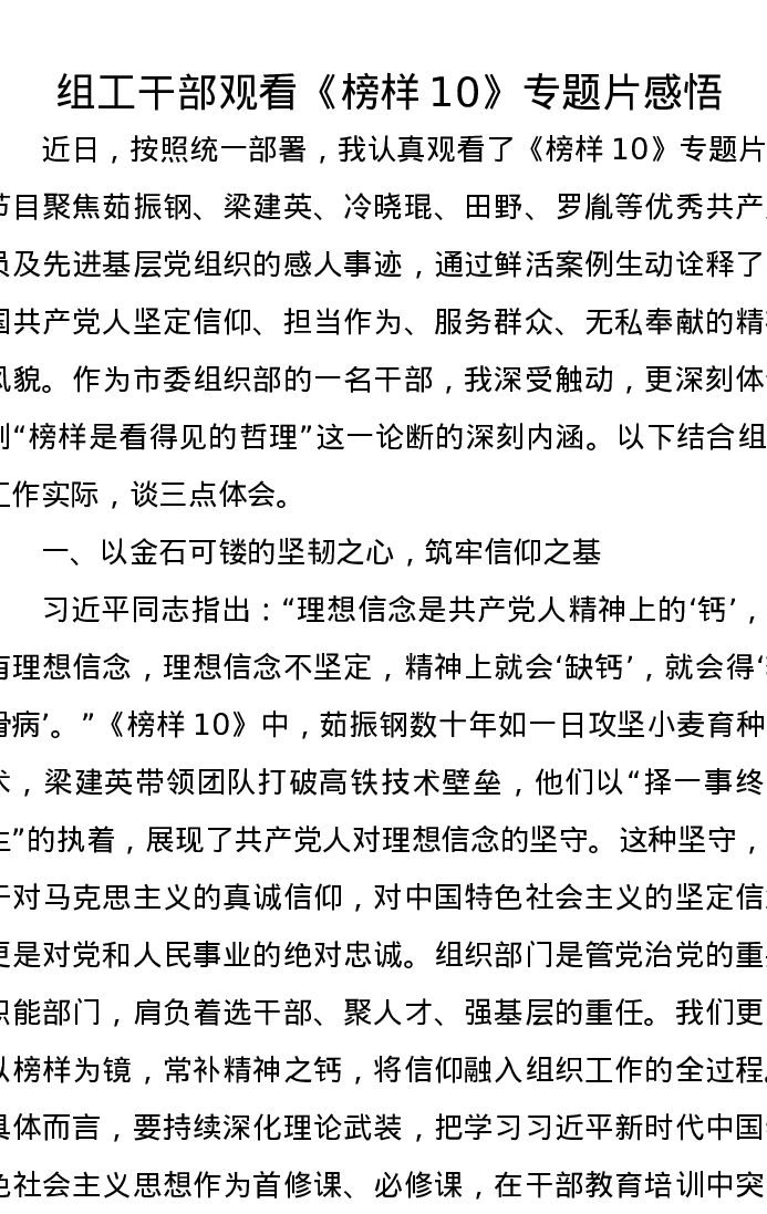 组工干部观看《榜样10》专题片感悟