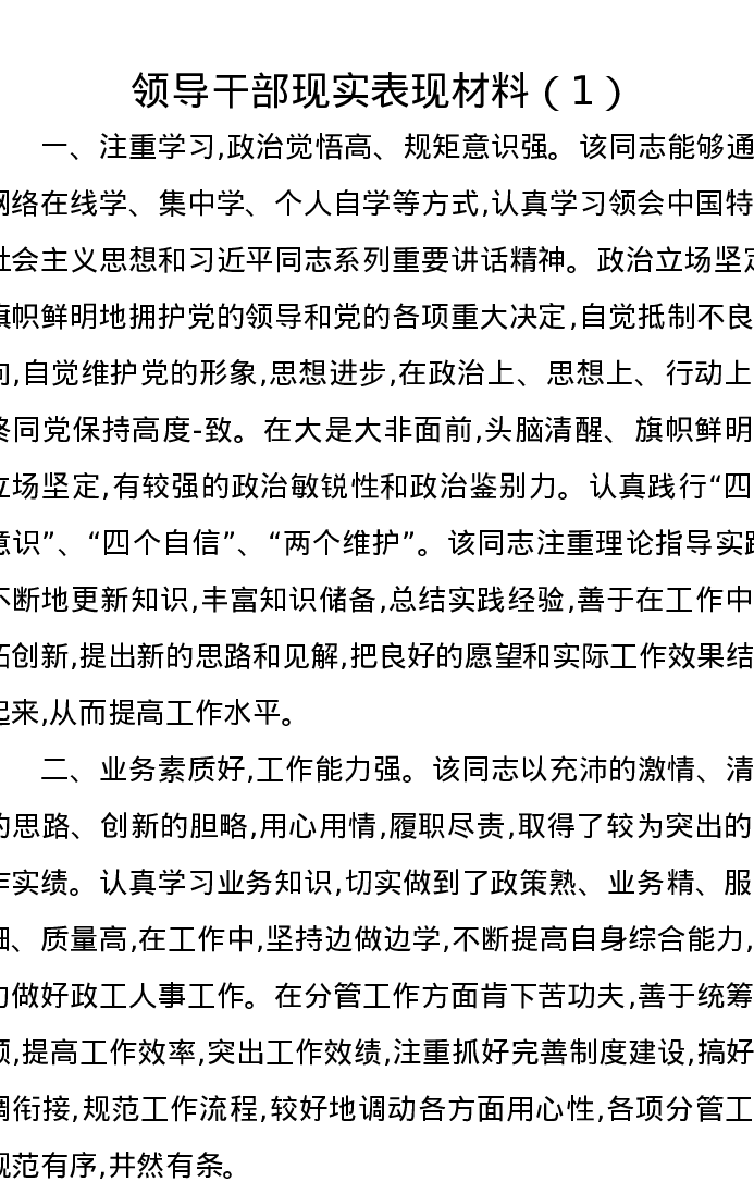 领导干部现实表现材料汇编12篇