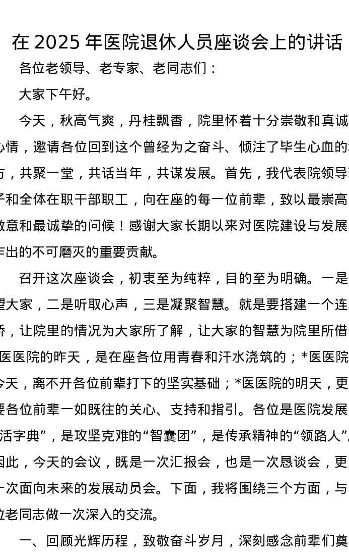 在2025年医院退休人员座谈会上的讲话