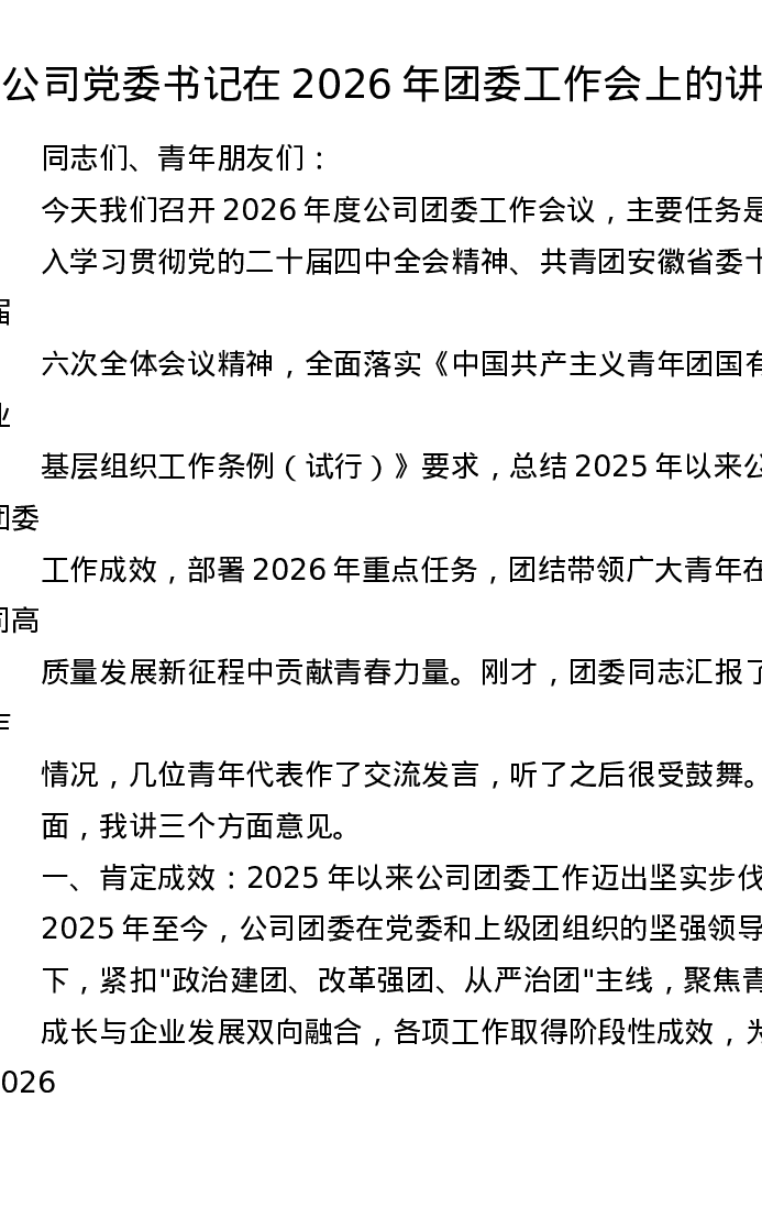 在2026年度团委工作会议上的讲话