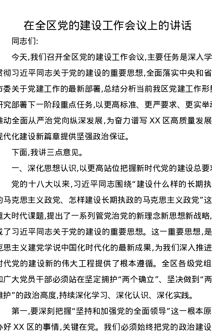 在全区党的建设工作会议上的讲话