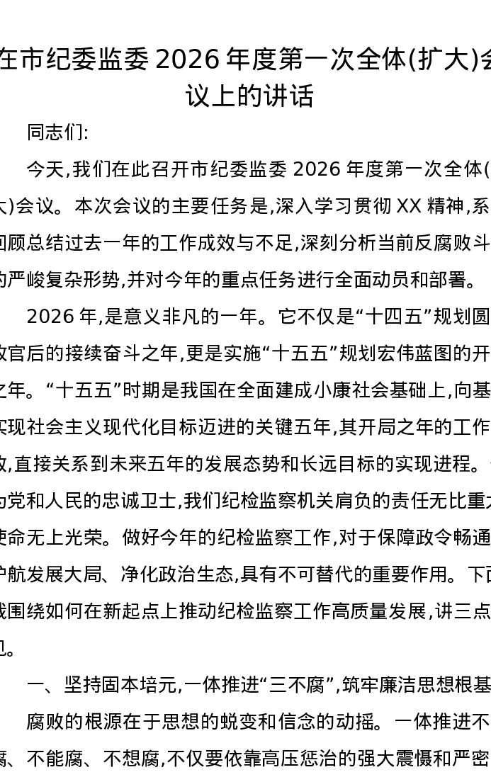 在市纪委监委2026年度第一次全体(扩大)会议上的讲话