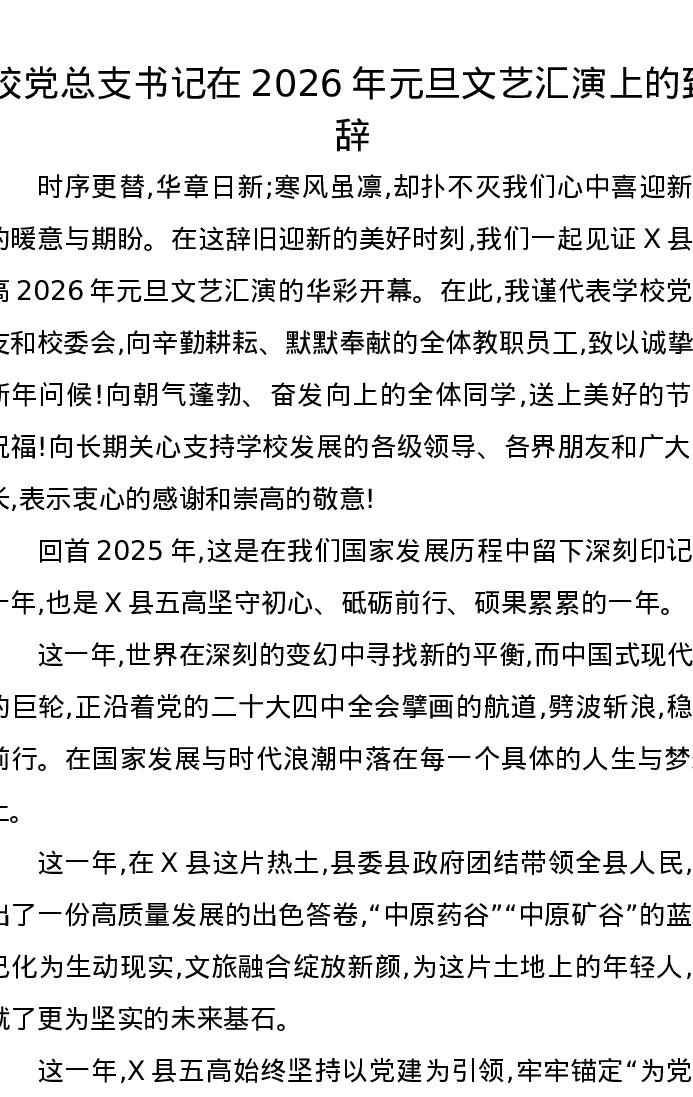 校党总支书记在2026年元旦文艺汇演上的致辞