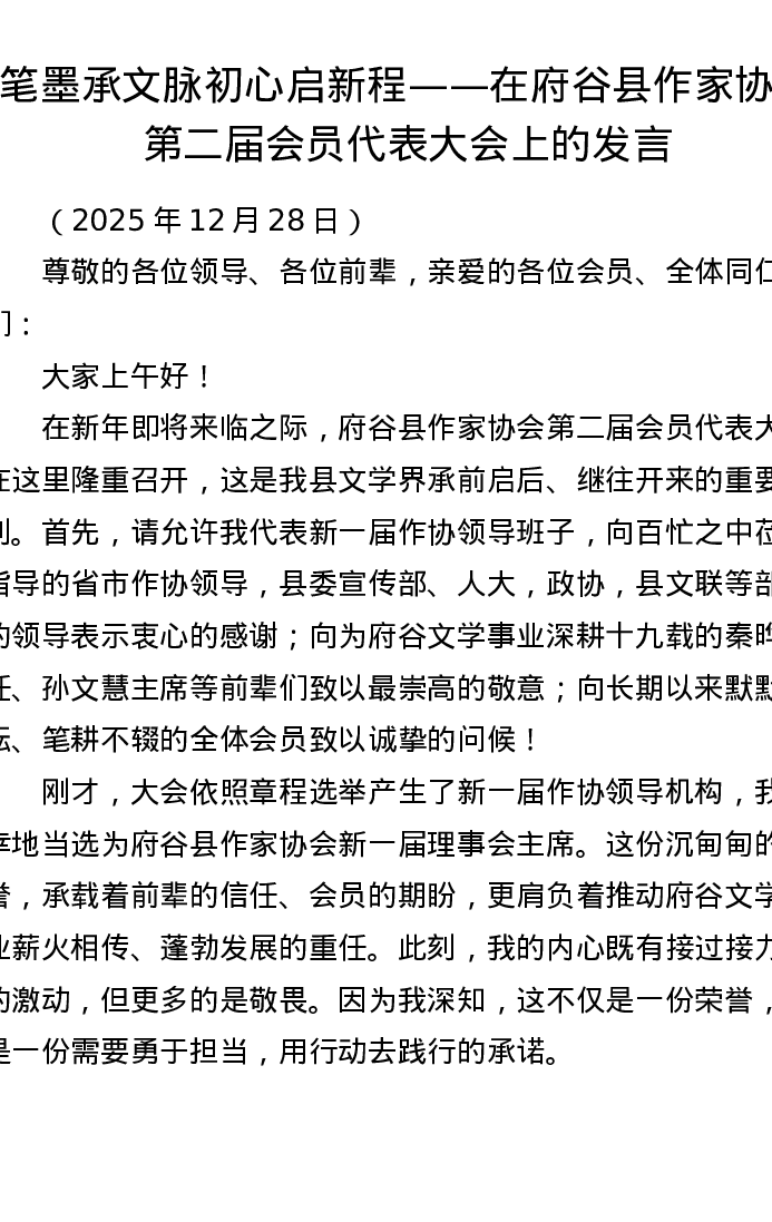 笔墨承文脉初心启新程——在府谷县作家协会第二届会员代表大会上的发言