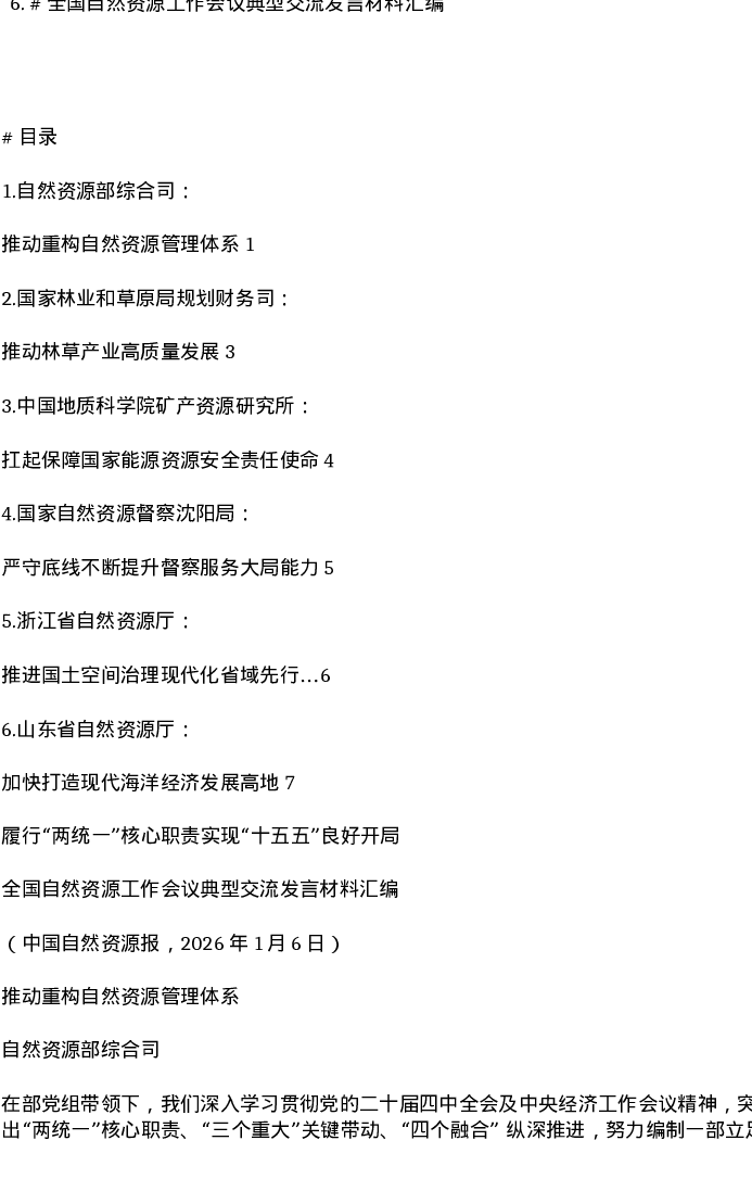 汇编:全国自然资源工作会议典型交流发言材料6篇