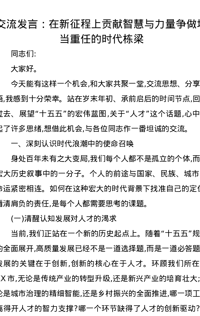 交流发言:在新征程上贡献智慧与力量争做堪当重任的时代栋梁