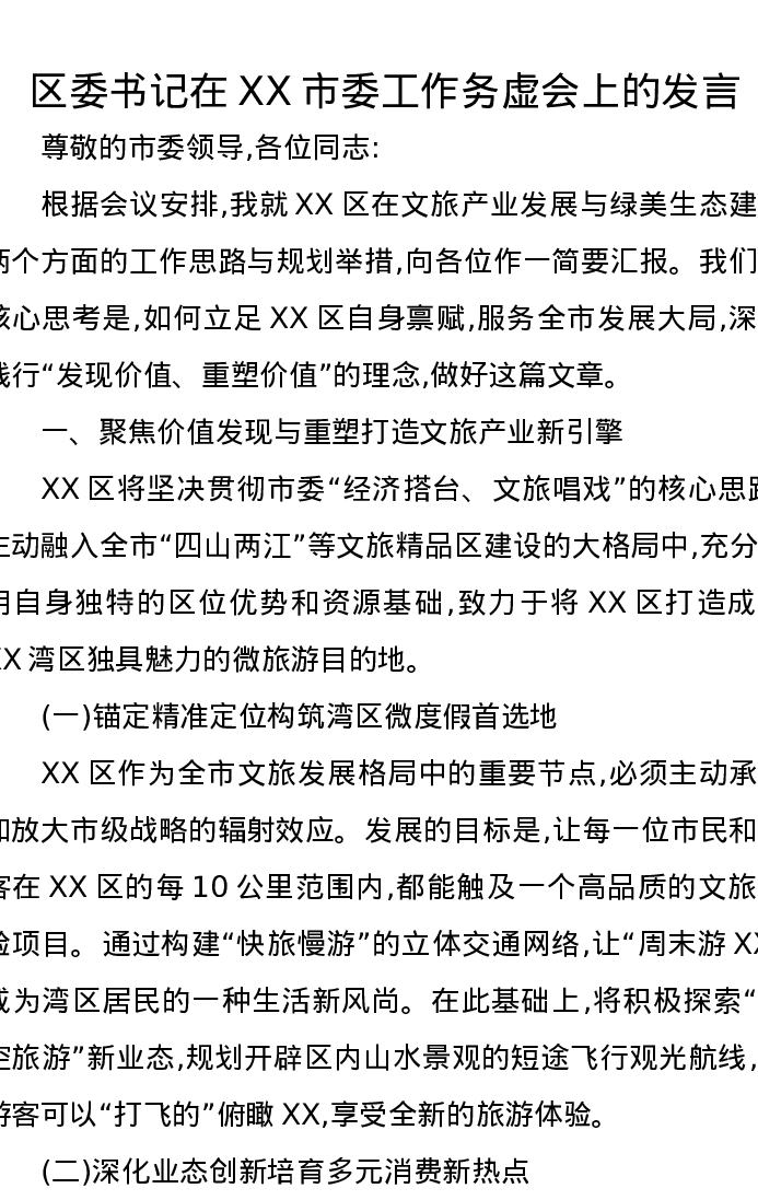 区委书记在XX市委工作务虚会上的发言