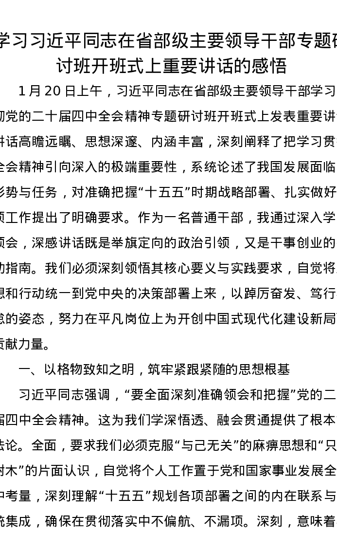 学习习近平总书记在省部级主要领导干部专题研讨班开班式上重要讲话的感悟